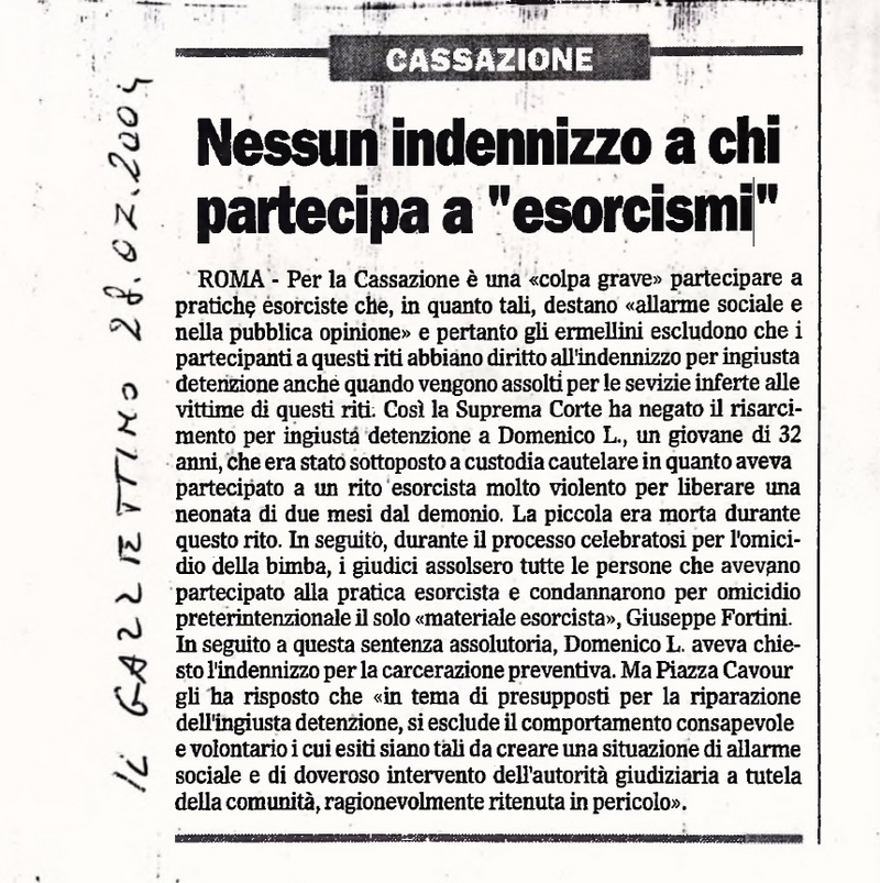 Nessun indennizzo a chi partecipa a "esorcismi"