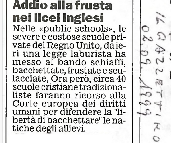 Tenete presente che hanno smesso di frustare i ragazzi nel 1999, non nel medioevo.