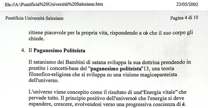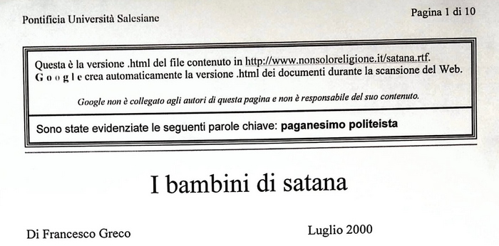 Tutte le aggressioni che ho subito in questi 26 anni hanno la sua origine da un documento scritto da tale Francesco Greco e pubblicato a nome e per conto della "Pontificia Università Salesiane" nel 2000.
