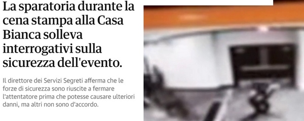 L'attentato alla cena con i reporter di Trump sa molto di messa in scena. Una sceneggiata per attirare i voti nel fallimento politico della politica di Trump negli USA. Come può un fascista farsi apprezzare? Fingendosi vittima mantenendo il ruolo di carnefice.